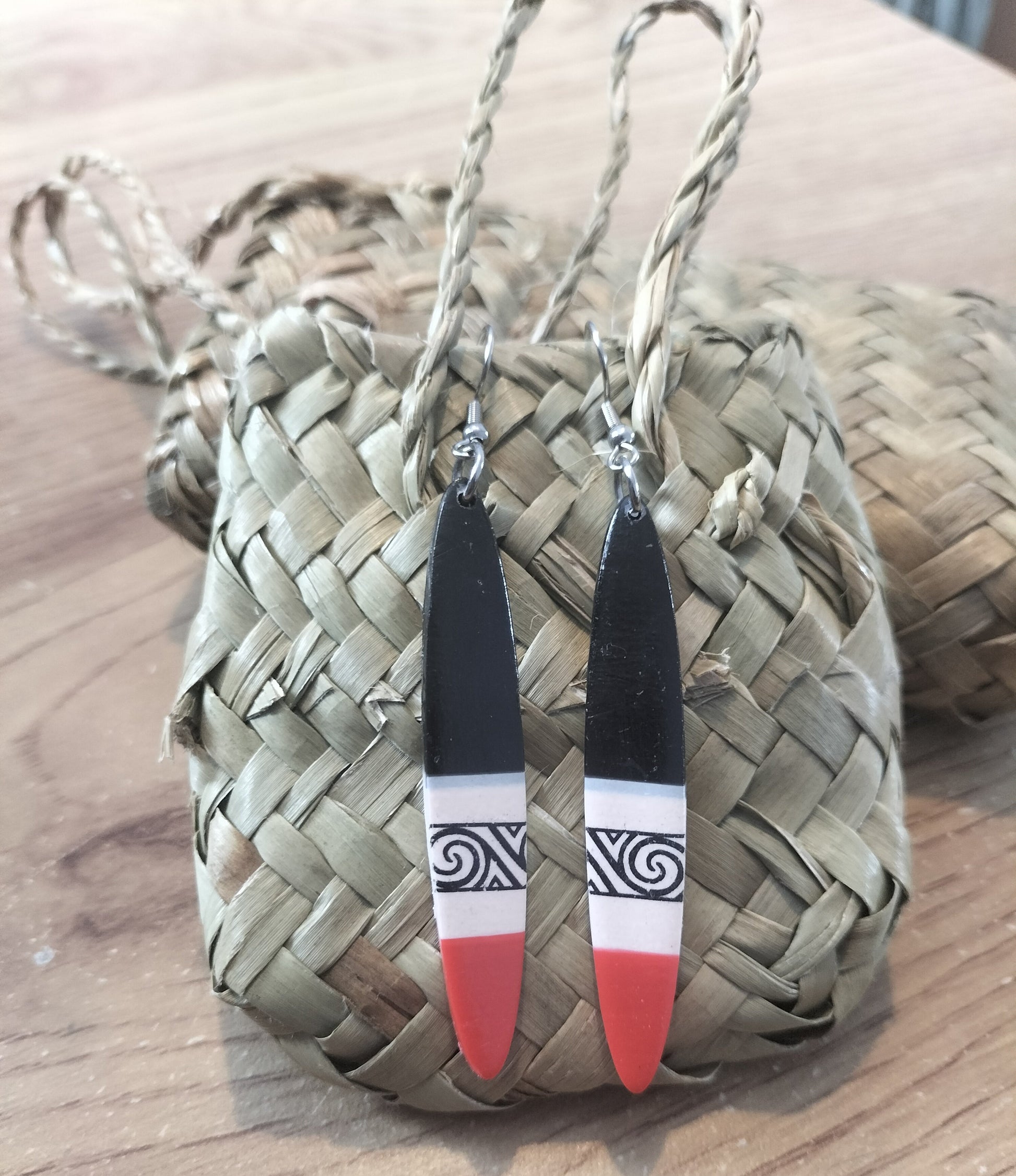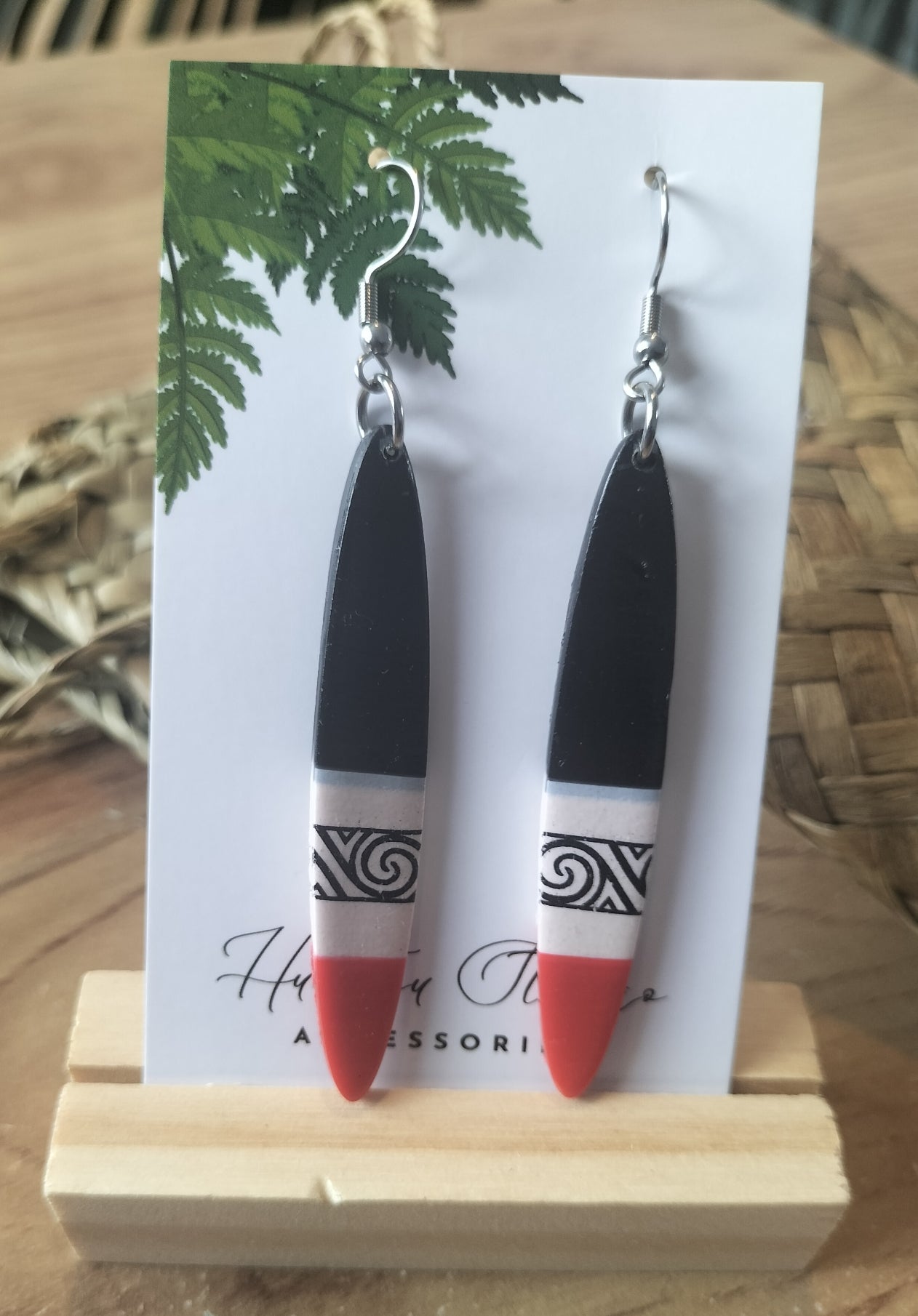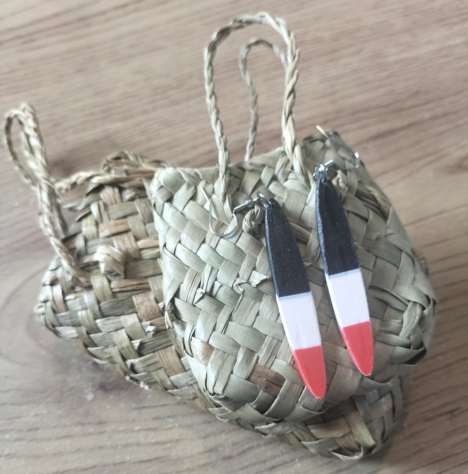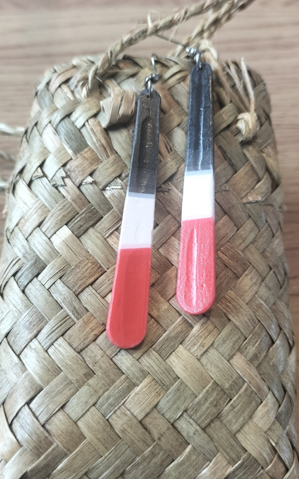 Note: These earrings feature a blend of three colours: Black, White, and Red.