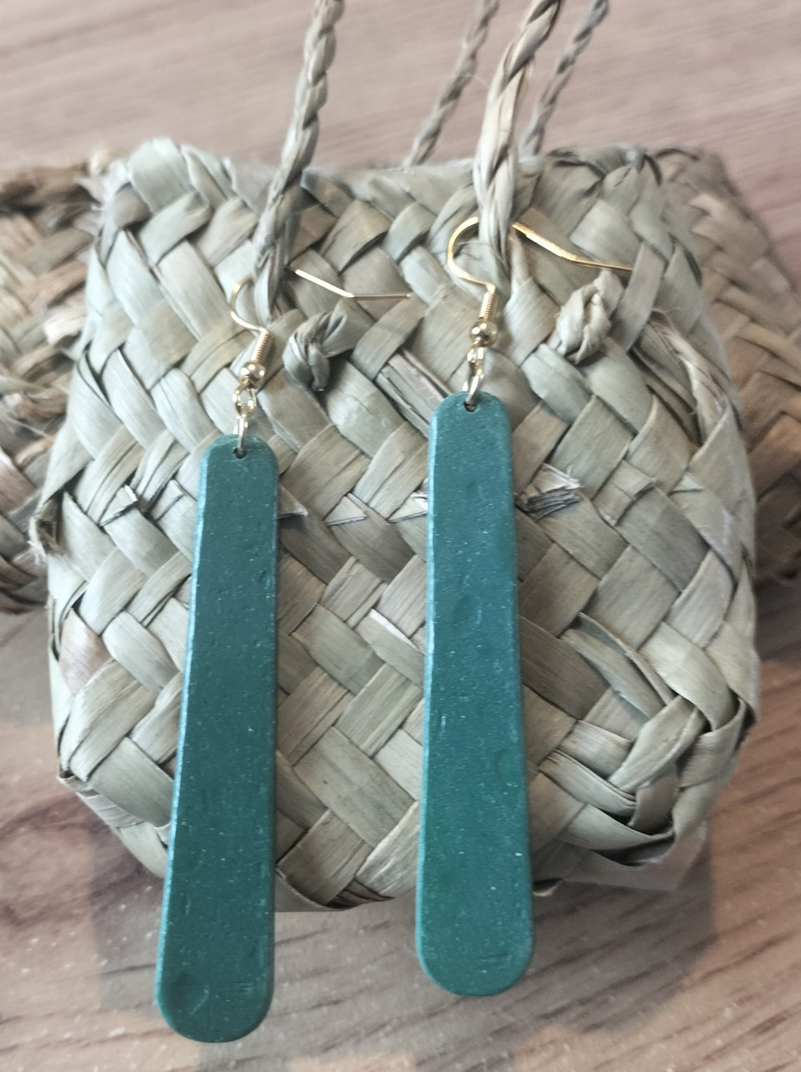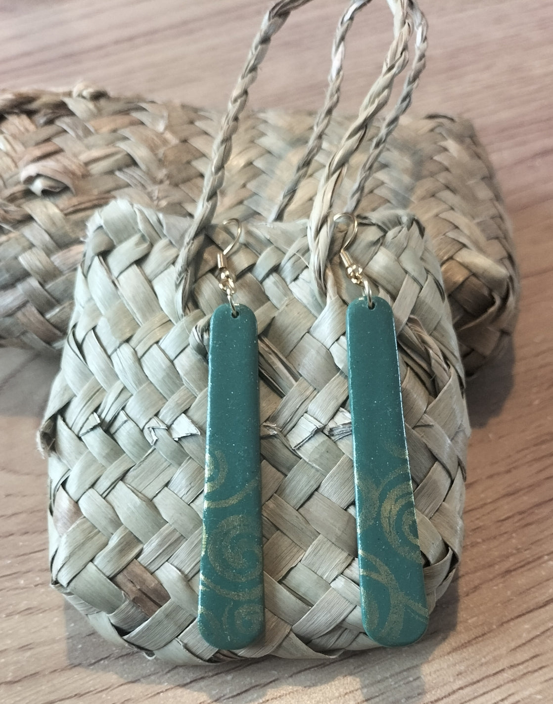 Handmade with polymer clay with stainless steel gold hooks.